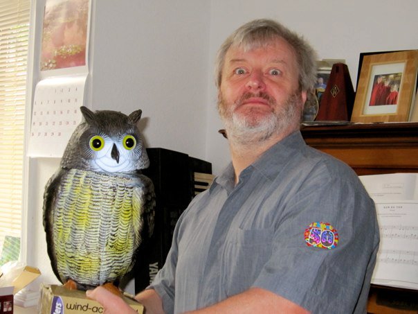 No chickens, and not the peregrine falcon I had hoped for, but the owl I was given for my birthday is splendid and we get on fine. It may even scare the pigeons off the fruit trees.