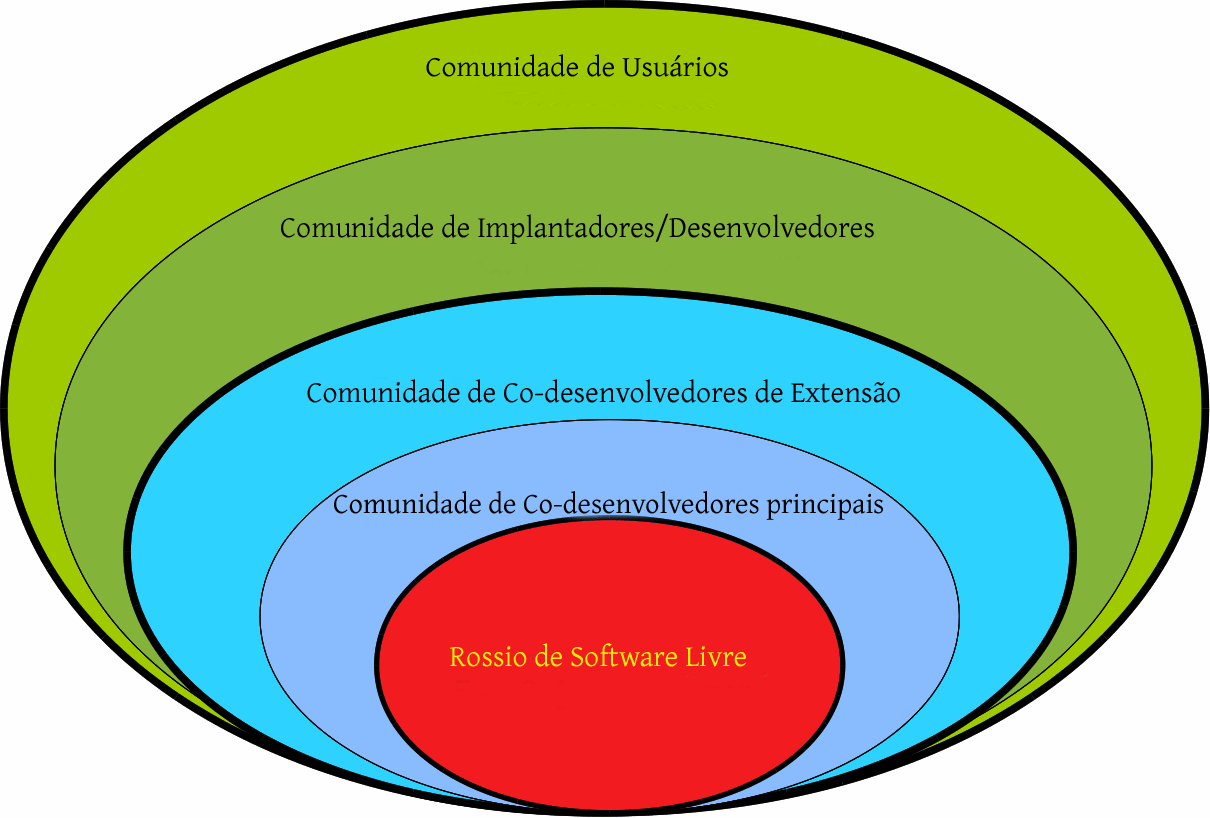 Quando estou com pessoas de negócios, muitas vezes sinto que preciso distinguir entre os diferentes tipos de comunidades que se formam ao redor dos diversos rossios1 (commons) de software livre. É comum caracterizarmos os membros da comunidade como “desenvolvedores” (conforme a visão “open source” costuma enfatizar) ou “usuários” (conforme a visão “Free Software” costuma enfatizar). Mais do que isso, o uso do termo “comunidade” para todos os estilos de envolvimento gera confusão, especialmente quando ligado às motivações para participação.